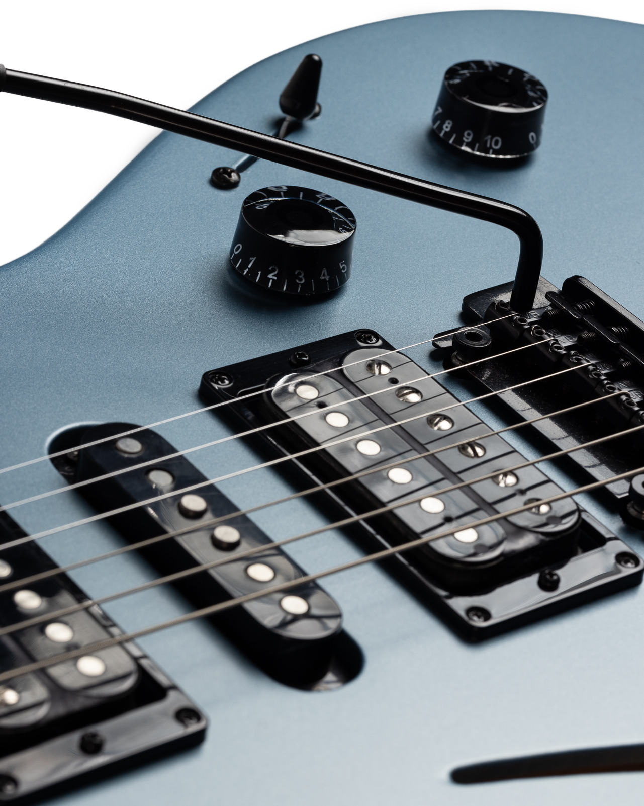 The 5-way toggle switch with split-coil function unfolds a wide range of sound – easy to control with master tone and master volume. Master your shredding event with a more than reliable 2-point trem.